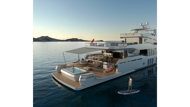 The 45XP has a more traditional garage with beach club while the 47XP lengthens the transom area to allow an expansive terrace area complete with pool, lounge areas, dining & full service bar.