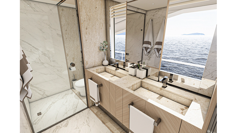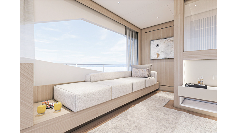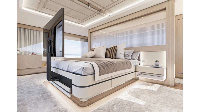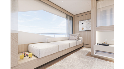 The 47XP is a ground breaking design not just with her sleek profile lines, but also due to the forward facing master cabin complete with private exterior deck, jacuzzi with waterfall feature, and floor to ceiling glass windows. A true master piece with the interior decor being developed by world renowned Milan based design studio Hot Lab.