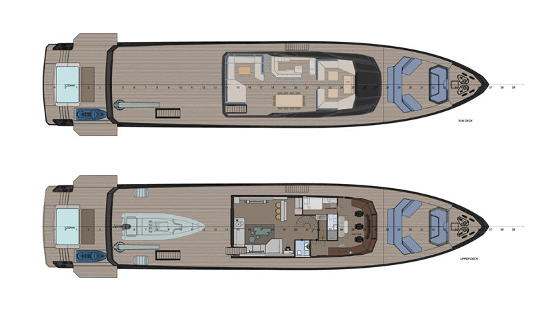 Delivery can be completed in 36 months from the time contracts are finalized so a very aggressive delivery schedule which makes her one of the most attractive options in the 45m range on the market today. The 47XP has been fully developed by Kroes Marine Projects who is behind the engineering of the vessel and full technical details & general arrangement available upon request.