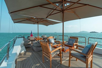 This configuration makes NYMPHAEA a great family yacht which also excels at entertaining. And with her 1400 NM range and economical speed at 12 knots, she and her 6m twin engine RIB chase boat comfortably explore South East Asia’s coastline.