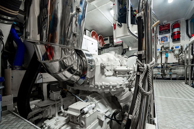 Powered by twin MTU 16V 2000 M93 engines producing 2,400 horsepower each, this yacht offers exhilarating performance—cruising comfortably at 20 knots with a top speed nearing 28 knots. Precision engineering combines with Princess’s renowned craftsmanship, delivering a smooth, stable ride and the thrill of true performance yachting.