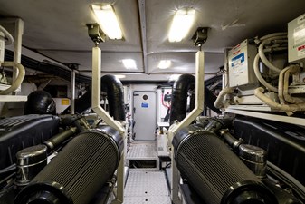 Performance: Powered by C-32 Caterpillar engines, it delivers a cruising speed of 27 knots. It also includes bow and stern thrusters for enhanced maneuverability.
