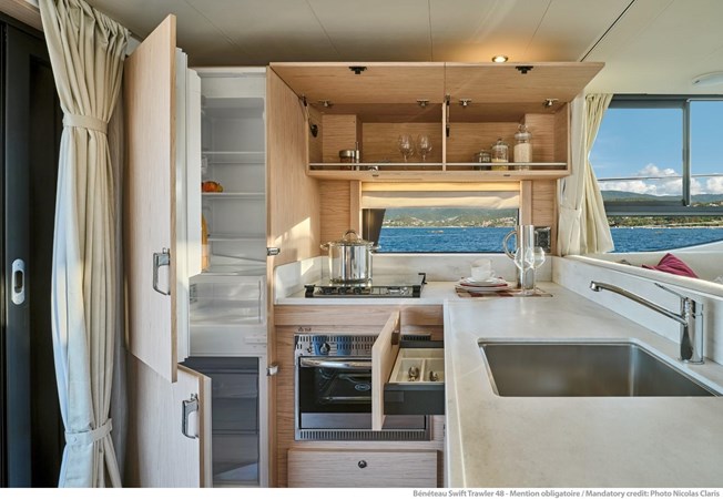 - Versatility: The Beneteau 48 Swift Trawler is a versatile boat that can be used for various activities, including fishing, cruising, and entertaining. The boat's spacious cockpit and flybridge provide ample space for outdoor activities, while the interior is designed for comfort and relaxation.