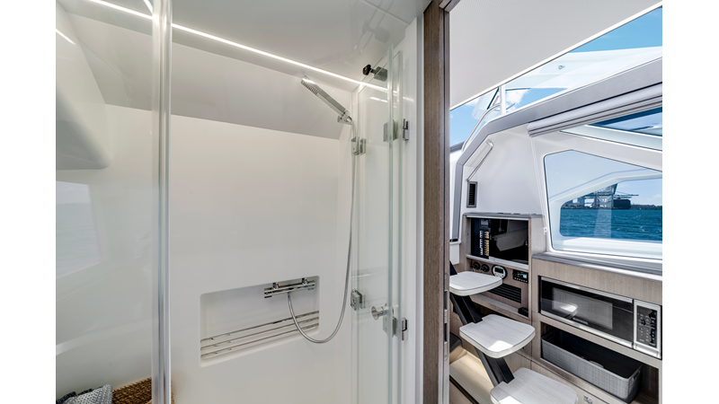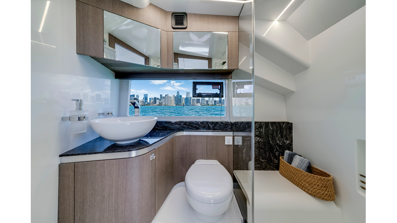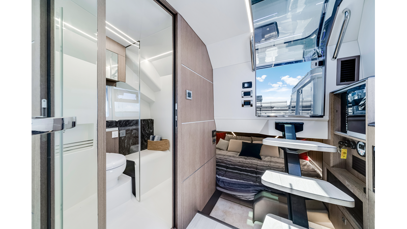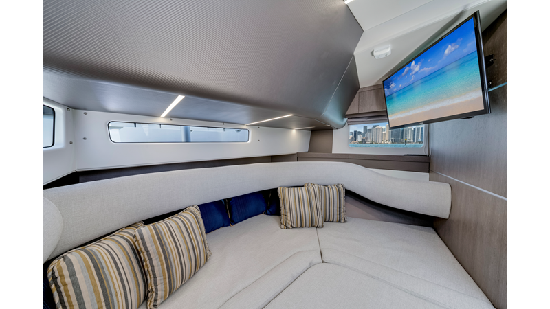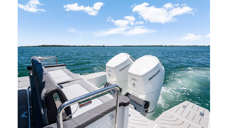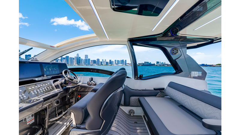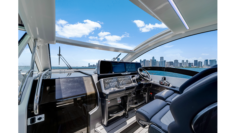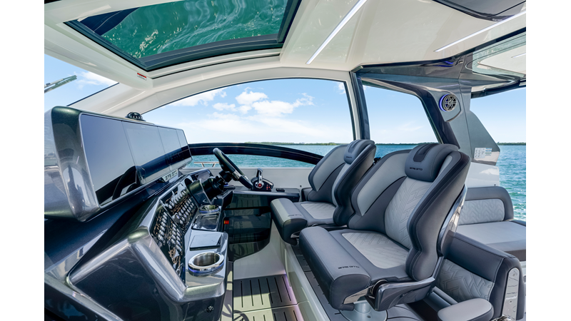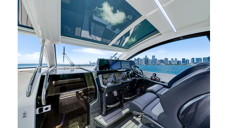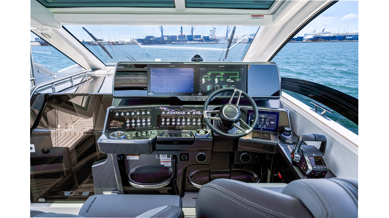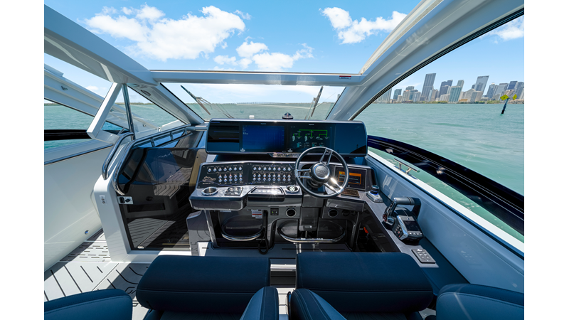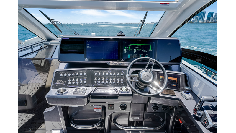 - Upgraded Raymarine package – dual 16” Axiom screens, radar, VHF