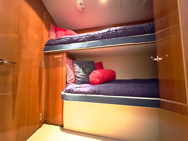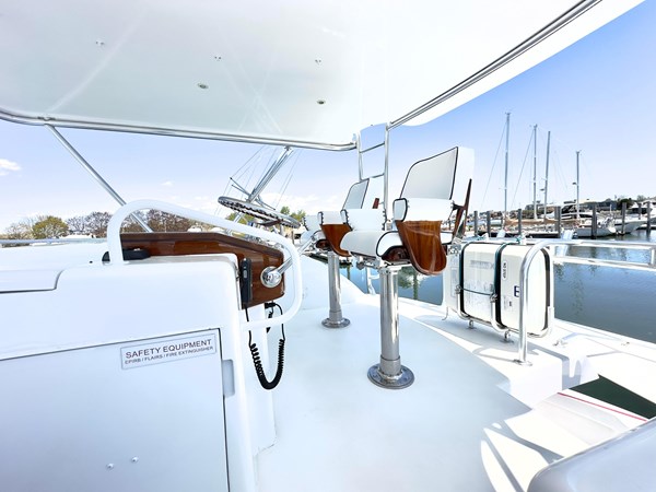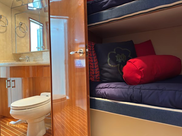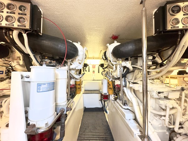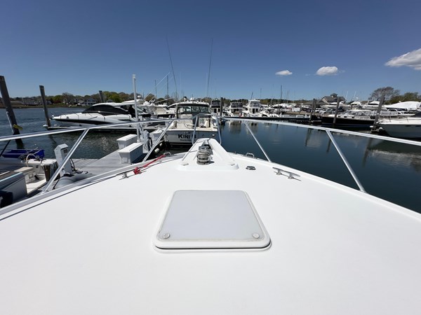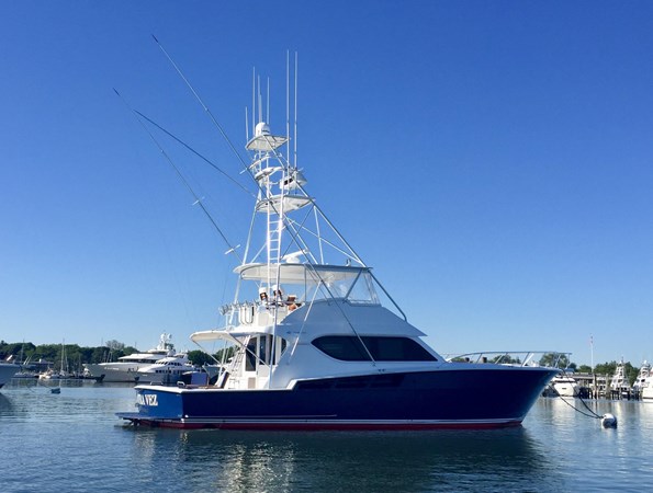 Exceptionally well maintained 2001 55 ft Hatteras with 2200 original hrs on, Caterpillar 1400 hp 3412E; An upgrade bow thruster Vetus motor. OTRA VEZ cruises New England waters in the summertime and always draws attention. The bridge features a Pipewelder's hardtop, four-side enclosure; pop-up console with superb electronics. The interior woodwork is flush-fill, high gloss teak, stunning with actual granite counters and Italian leather upholstered settee and dinette.. There are three staterooms (two with queen-sized berths, one with large over/under bunks) and two complete heads. A must see for someone looking for a boat of this caliber.