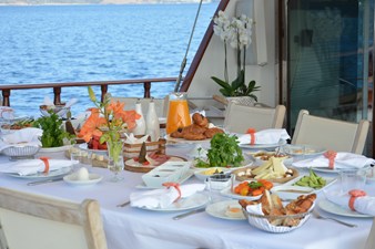 This 34-meter steel gulet, built in 2007, is in very good, well-maintained condition. She offers 5 guest cabins, a spacious interior with generous volumes, and wide deck areas that are comfortable and functional. Her exterior has well-balanced proportions, while the interior benefits from a layout that feels open and airy.