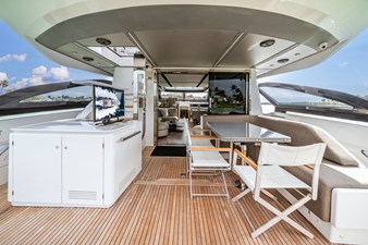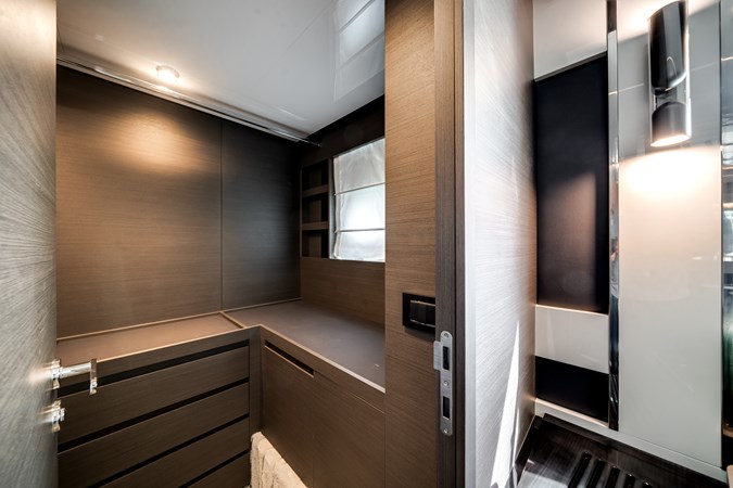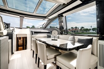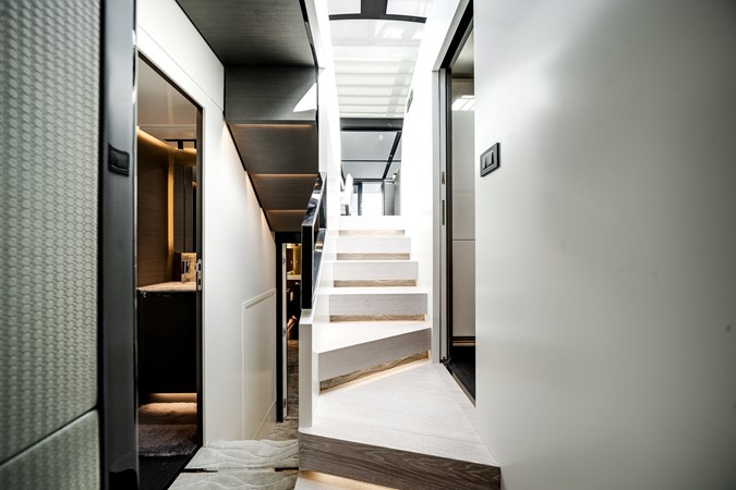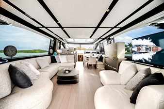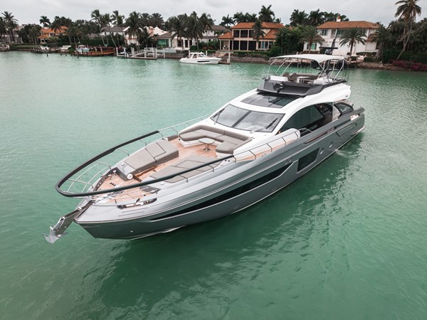 Her sleek profile is matched by a beautifully appointed interior featuring four luxurious staterooms, expansive salon, and seamless indoor-outdoor living spaces. A spacious cockpit, sun-filled bow lounge, and convertible beach club with tender garage make the S8 ideal for entertaining and extended cruising alike.
