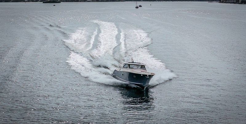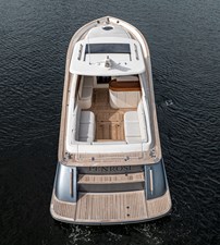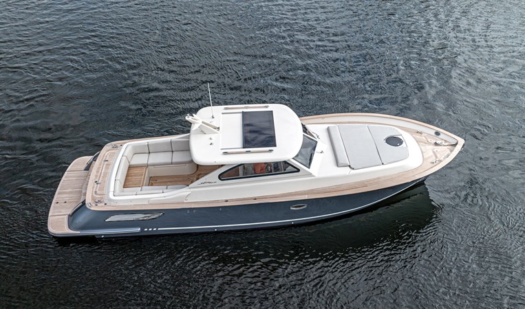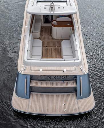 We are pleased to introduce PENROSE, a Lobster 35 built by Cantieri Gagliotta. Powered by Mercury diesels rated at 270 hp each, PENROSE cruises at 26 kts and has a range of around 250 miles. Her deep V hull design and SeaKeeper 2 ensure a smooth, dry ride while lounging in a choice of multiple areas aboard. An upholstered tanning area is on the bow or a U-shaped seating area is found aft in the cockpit, where a convertible table can covert the seating to a flush lounging surface. The outdoor galley is close by, behind the helm seating, and well-appointed, air-conditioned sleeping accommodations and a full head are forward. Penrose is the perfect platform for relaxation and luxurious entertaining on the water.
