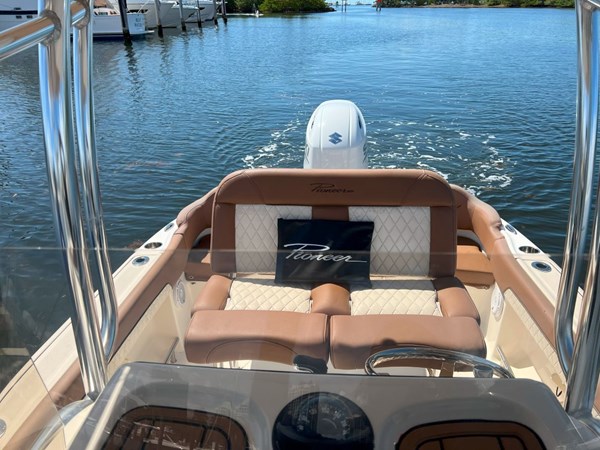 Powered by a 150 HP Suzuki outboard engine, the Pioneer 202 Islander offers an efficient cruising speed of 27 mph and an impressive top speed of 41 mph, making it ideal for fishing trips, water sports, or weekend cruising. With seating capacity for up to 8 passengers, there’s plenty of space for family and friends to enjoy a comfortable day on the water.