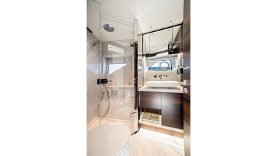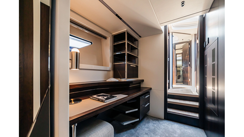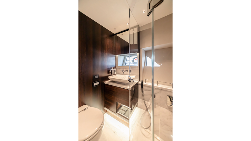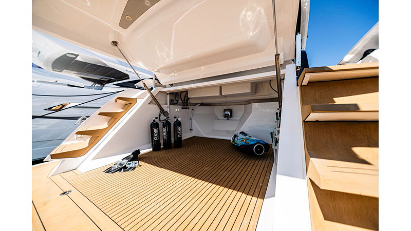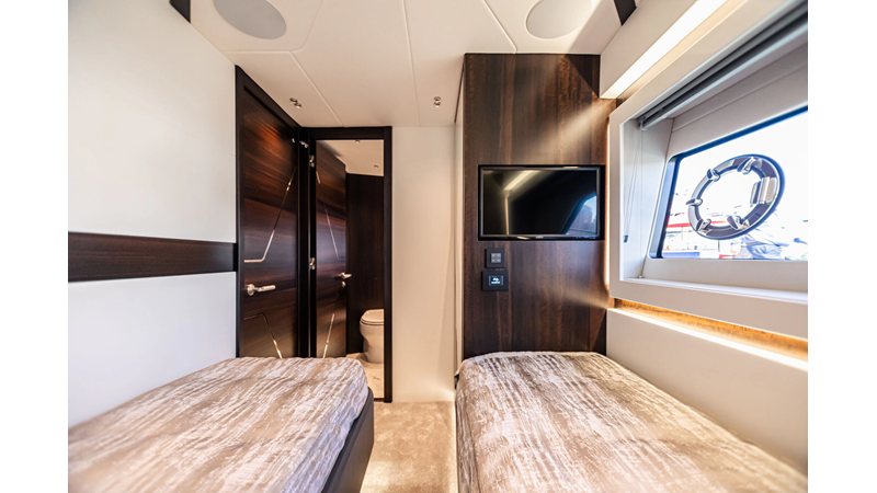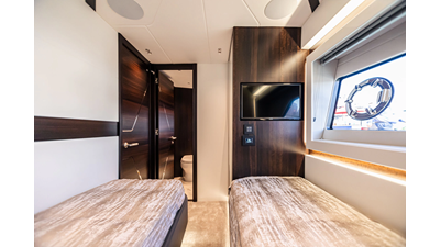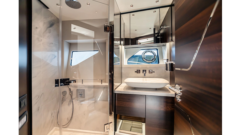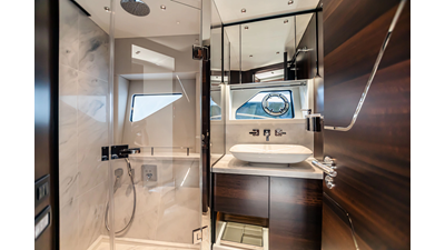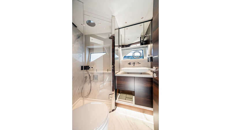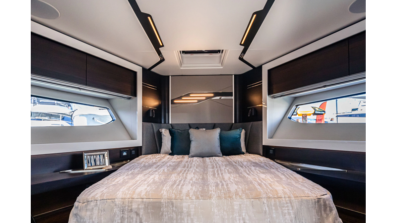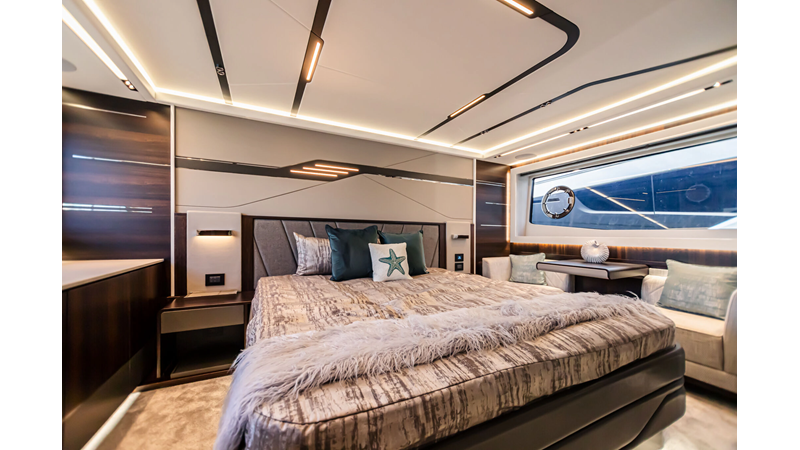 The Predator 65 combines striking exterior lines with impressive onboard volume. Designed for fast cruising and social entertaining, she features expansive exterior lounging areas and a refined interior with abundant natural light. Her layout balances performance with comfort, offering well-appointed guest accommodations and a commanding helm position for engaging, driver-focused yachting.