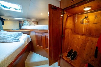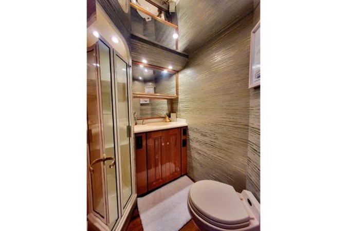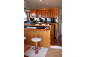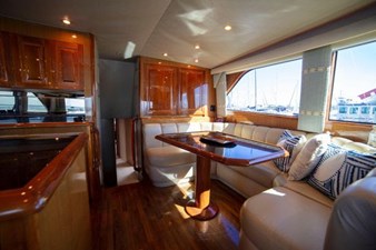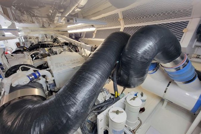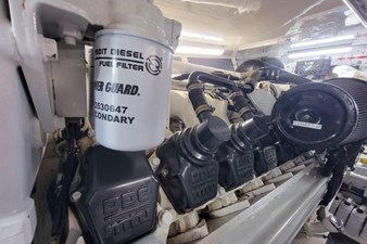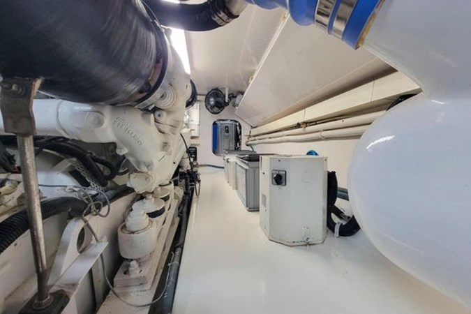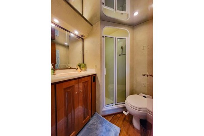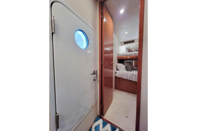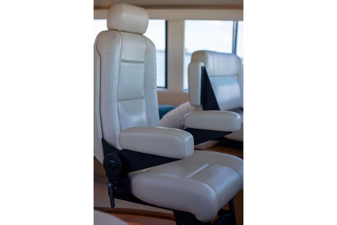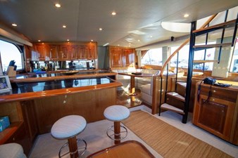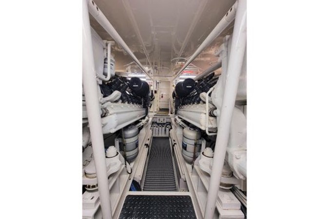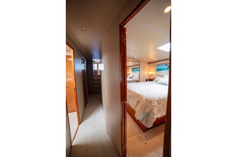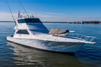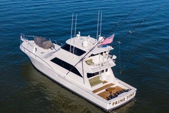The highlight of PRIME TIME is her enclosed bridge helm and additional salon area. This allows the captain, owner, and guest to enjoy time on the water regardless of the weather conditions. PRIME TIME also features the upgraded 4 stateroom, 4 head layout. As you enter the main salon, the door is offset to Starboard to maximize interior space. The Salon features a large U-shaped sofa to Port with deep storage underneath the seating area. Great space to store tackle and gear. To Starboard is the ship's electrical panel, entertainment area, ice machine, and spiral staircase. Forward of this is the fully equipped galley and dinette as well as a large pantry. Moving below deck, the laundry center is to Starboard, and access to crew stateroom and engine room via crew access door is to Port. The master stateroom is to Port with an ensuite head. Forward is the VIP Stateroom with an additional crossover berth and ensuite head. The additional (upgraded room) is to Starboard which features a single birth with guest head.