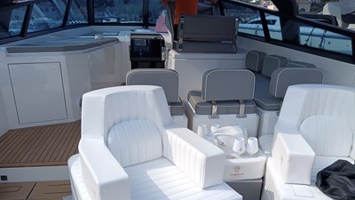 The Evo 43 is a striking 2016 model that perfectly embodies Italian innovation, craftsmanship, and design. Measuring 13.12 meters in length with a maximum beam of 4.52 meters (extending to 6.32 meters with the expandable bulwarks) and a draft of 1.10 meters, she offers an ideal combination of sleek lines and impressive versatility. Many recent works and upgrades have been completed, ensuring she is presented in excellent condition and ready for immediate use. Her interiors are luxurious yet minimalist, showcasing premium materials and refined finishes throughout. The layout features two elegant cabins and one well-appointed bathroom, offering a balance of comfort and contemporary style. Every detail has been designed to maximize livability and enhance the onboard experience. Powered by Volvo Penta IPS engines, the Evo 43 delivers exceptional performance, easy handling, and remarkable fuel efficiency. The yacht is equipped with advanced Garmin navigation systems and features an innovative hydraulic system that expands the main deck to an impressive 27 square meters, creating a generous open space for relaxation and entertainment. Combining modern technology with timeless Italian design, the Evo 43 stands out as a true expression of elegance, functionality, and performance.