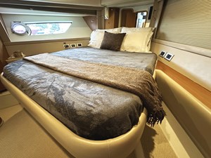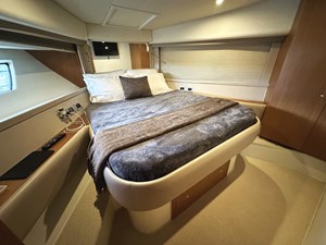 Inside, PRIMO boasts a modern, open-plan interior finished with high-quality materials. The salon features plush seating, a dining area, and a fully equipped up-galley. Panoramic windows offer stunning views and a bright, airy atmosphere. Below deck, the yacht accommodates up to six guests in three luxurious cabins, including a full-beam en-suite master with King berth, an en-suite VIP with centerline queen berth, and a guest cabin with side-by-side twin berths.