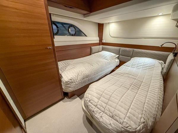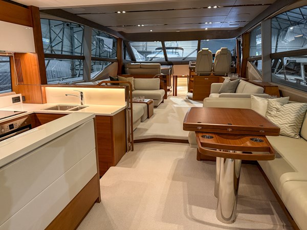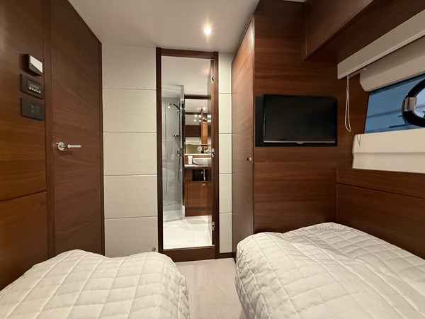 The interior is finished in elegant satin-finished walnut, creating a warm and contemporary feel throughout. Combined with Princess’ renowned craftsmanship and intelligent layout, this yacht offers generous living spaces, luxurious cabins, and superb social areas both inside and out.