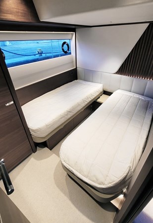 Convertible twin cabins (port & starboard) with electric sliding berths