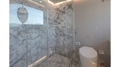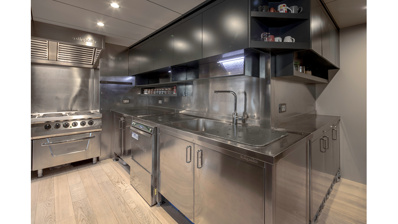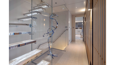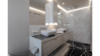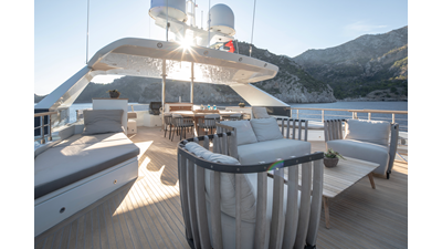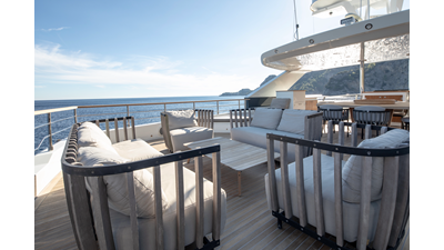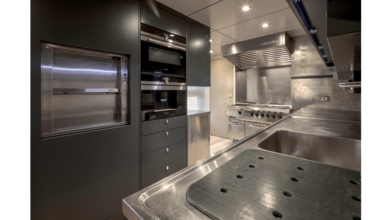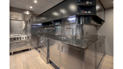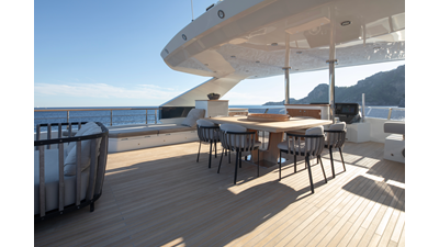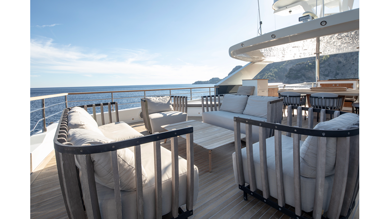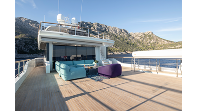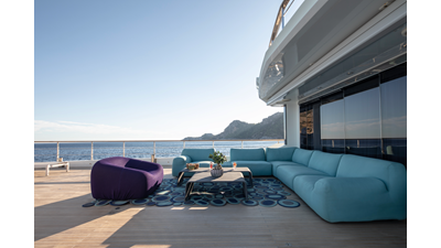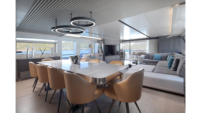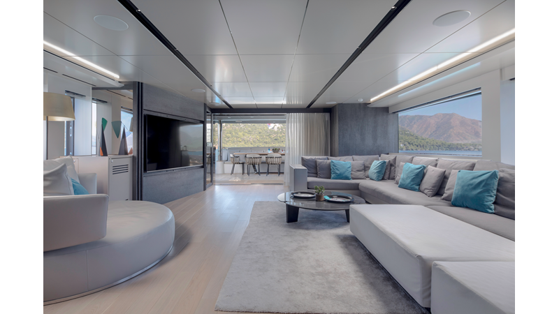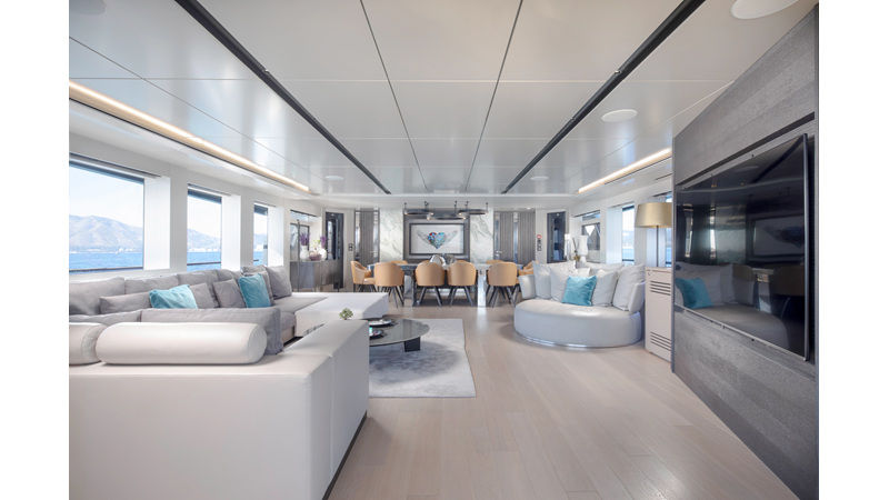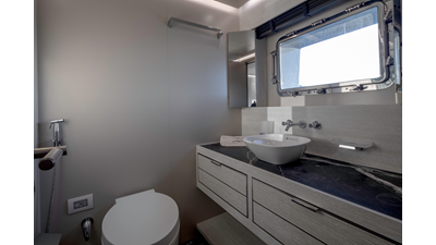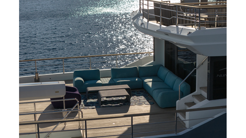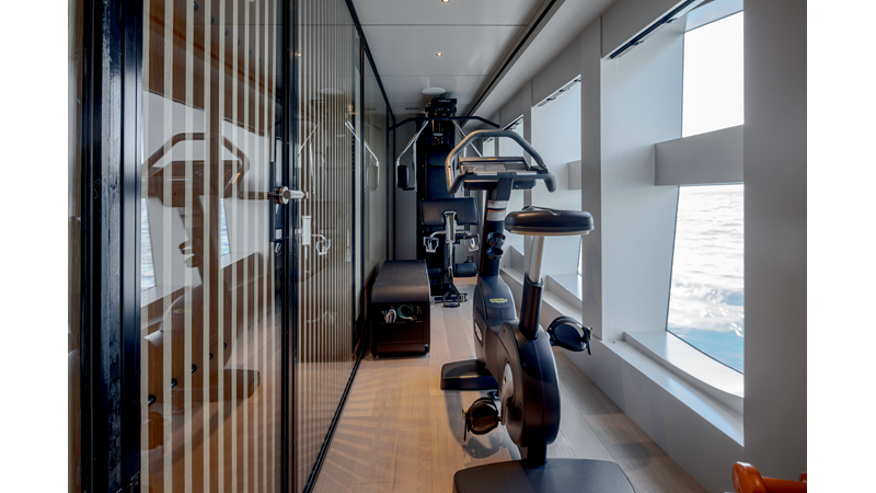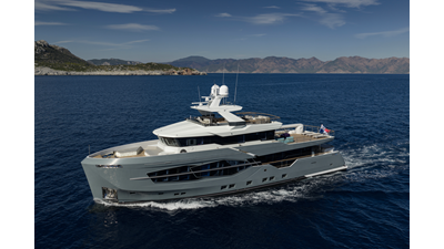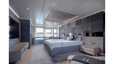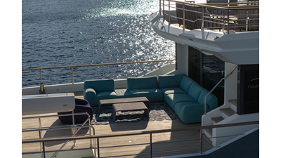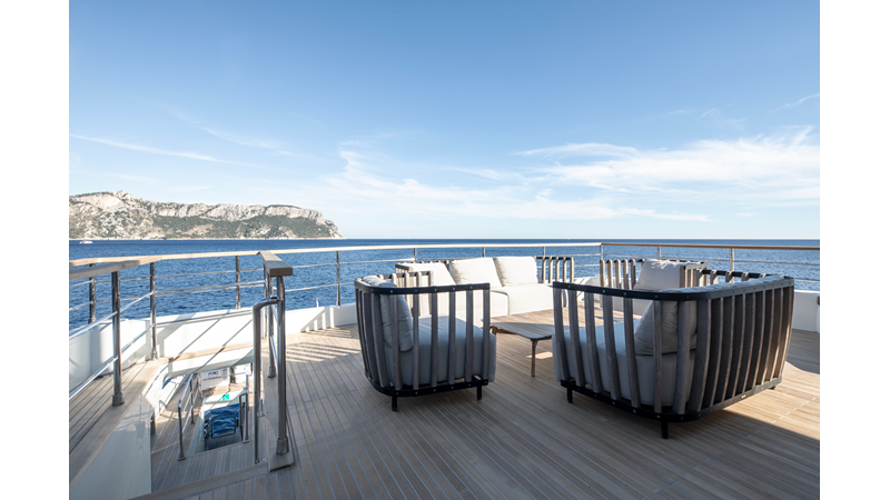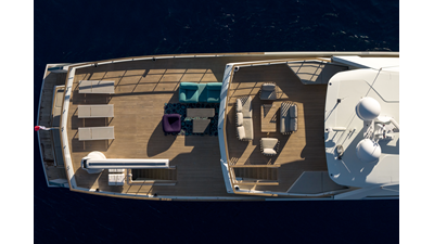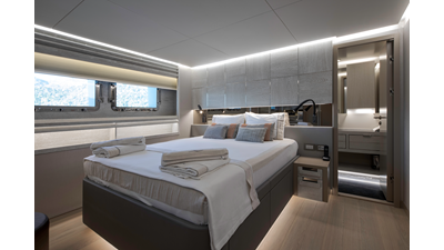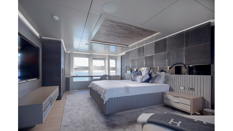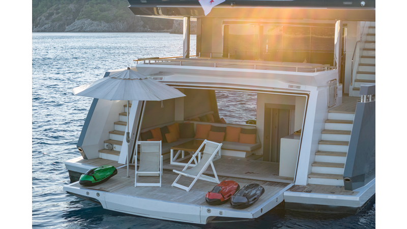 Her bold lines are highlighted by a plumb bow painted in a striking ghost gray, forward raked windows, and large glass windows. Equally stunning as she is capable, QM has a 4,000nm range & can carry a best-in-class number of tenders & toys on deck thanks to her 3 ton davit on the boat deck.