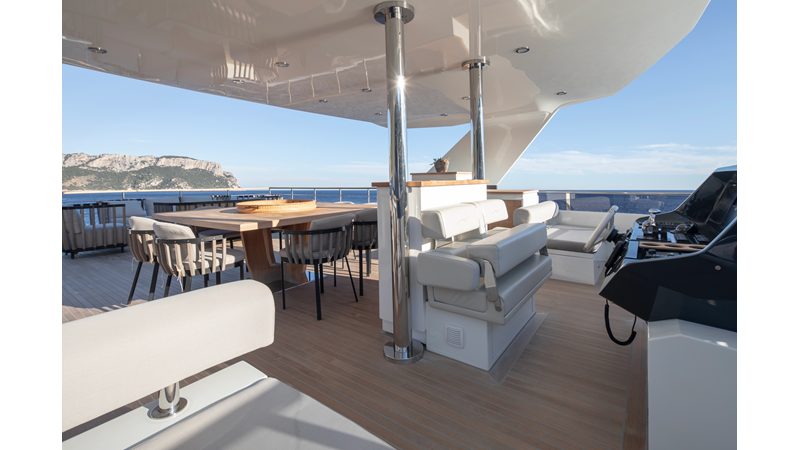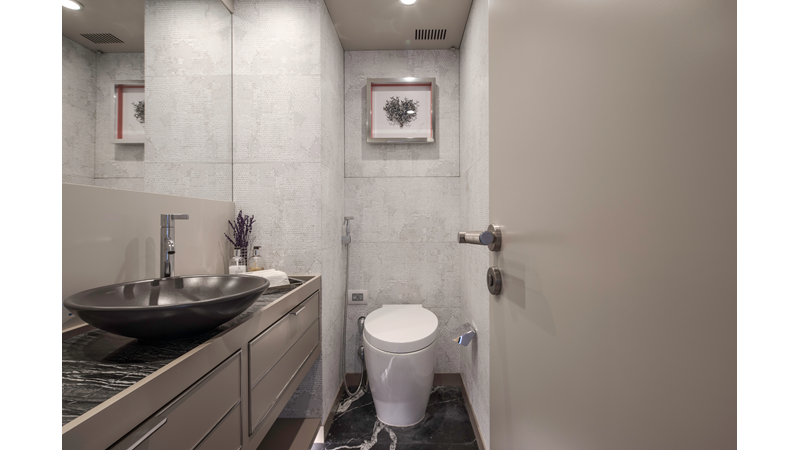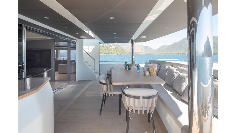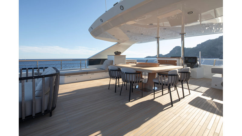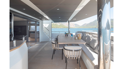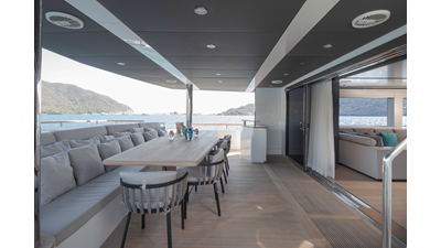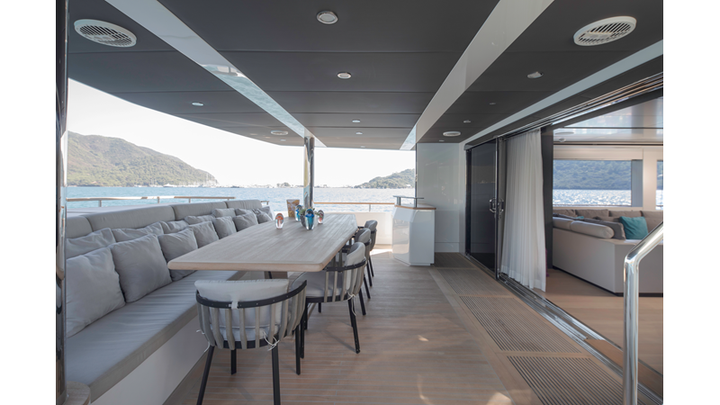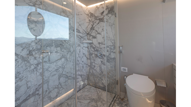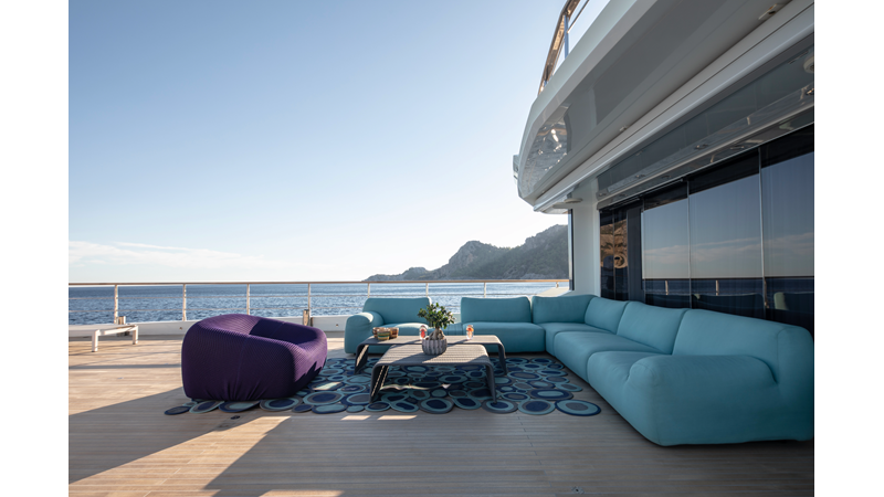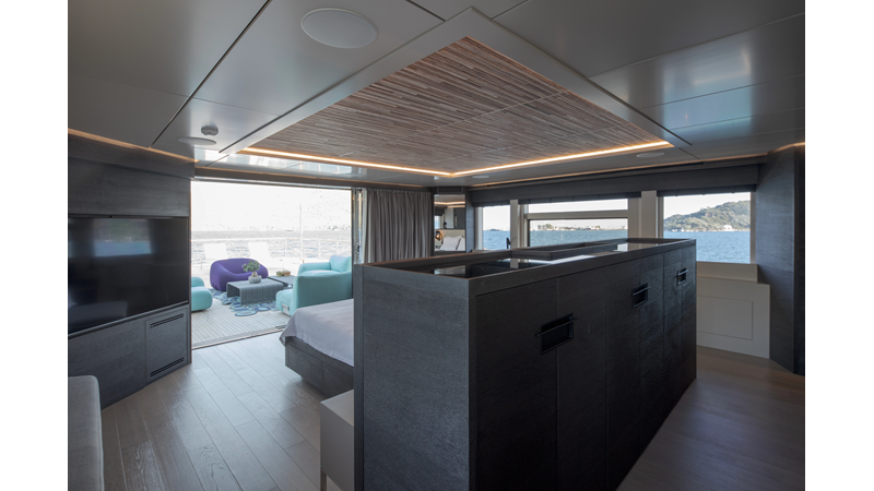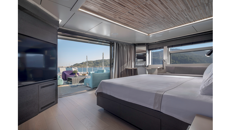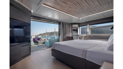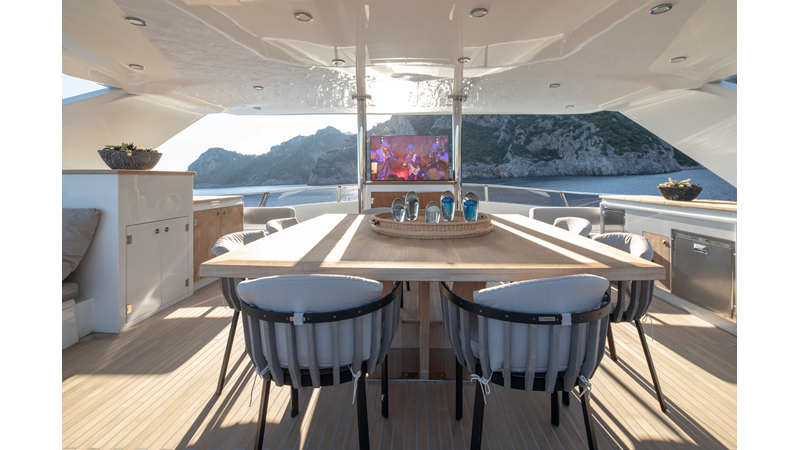 She was custom ordered by the owner and features a stunning, family friendly interior decor by Esra Kasmirci that features warm earth tones throughout. To encourage large family gathering, her layout consists of 6 cabins that sleep 12 guests including a private owners deck on the upper level, a main deck VIP that could double as a second master, and 4 additional cabins on the lower deck.
