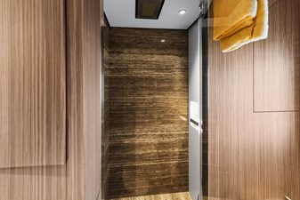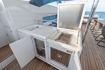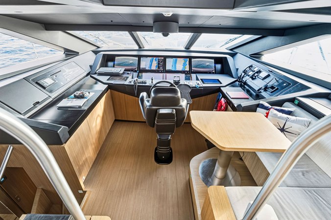 The outdoor spaces are a standout feature of the Custom Line 120’. The expansive flybridge offers multiple seating and dining areas, perfect for alfresco living, while the aft and fore decks provide additional options for sunbathing, dining, or quiet relaxation, whether underway or at anchor.