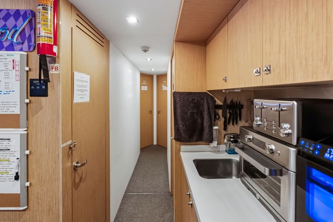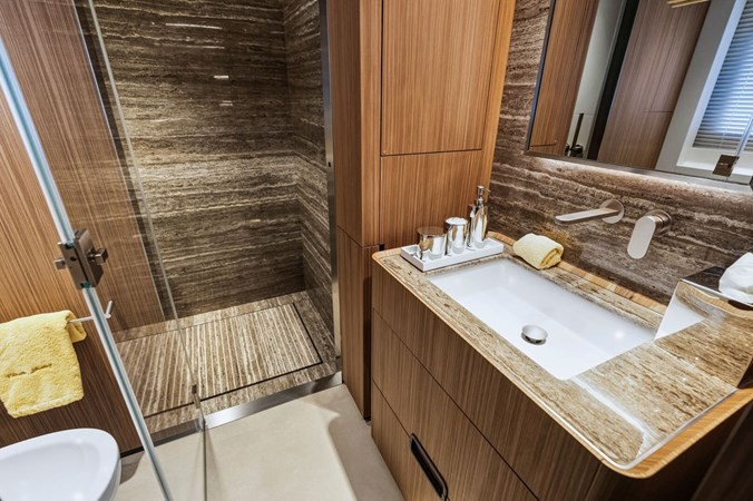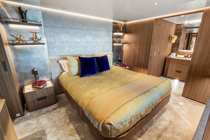 Accommodations are generous and well-planned, featuring a full-beam on-deck owner’s suite that offers exceptional privacy, ample storage, and a luxurious ensuite bathroom. Below deck, guest staterooms provide five-star comfort, each with its own ensuite, making the yacht ideal for extended cruising with family and friends.