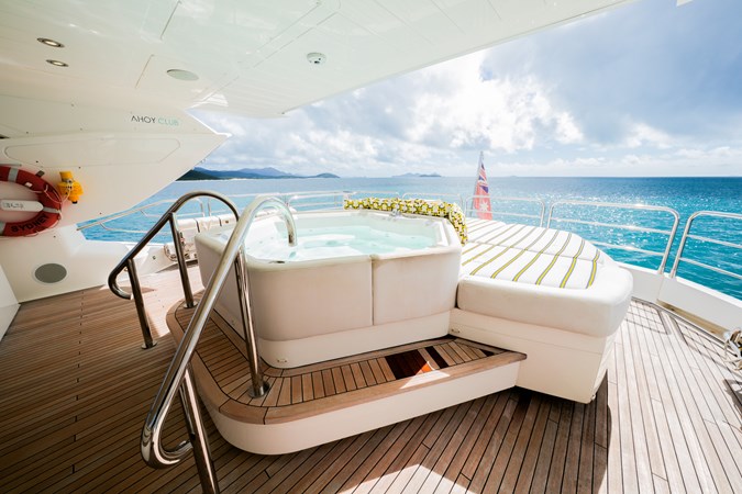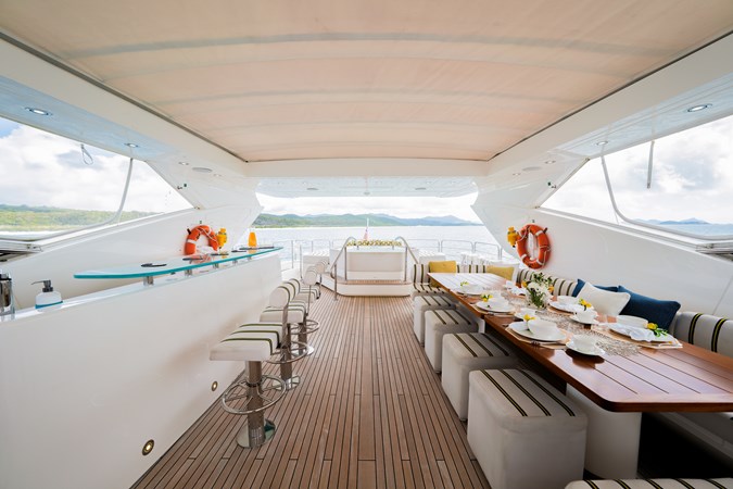 Designed to sleep up to 10 guests, RASCAL features a full-beam master suite on the main deck, two beautifully appointed VIP staterooms, and two twin cabins with optional conversion. Ideal for both family cruising and entertaining guests in style.Exceptional Outdoor Living