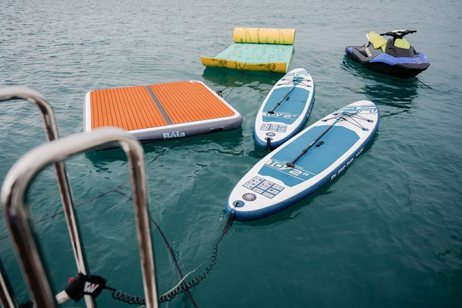 A full suite of water toys and tenders ensures every day on board is packed with adventure, whether it’s high-speed fun or serene paddleboarding in a quiet bay. A large swim platform offers easy access to the sea.Impressive Performance