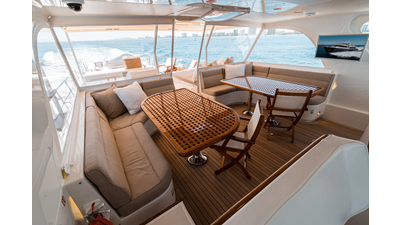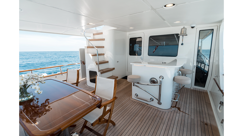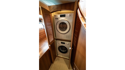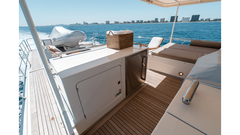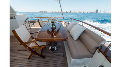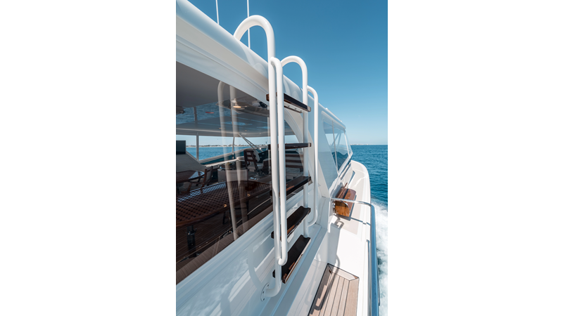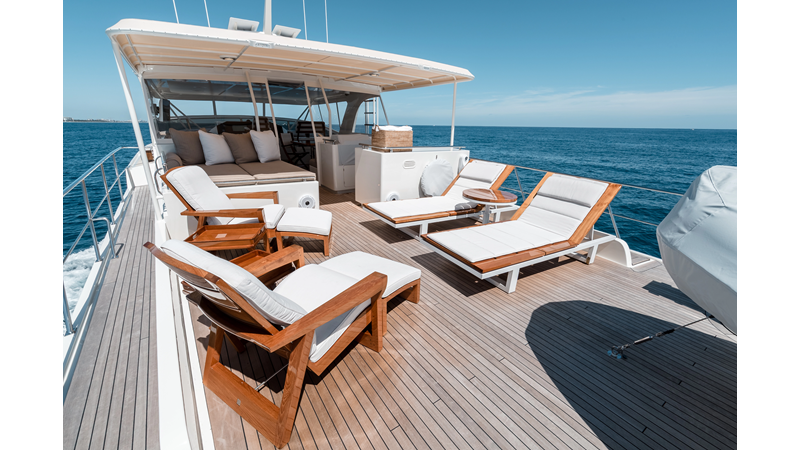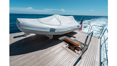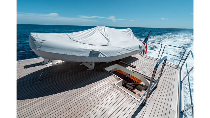 Services for Engines and Generators Complete (10/25) Updated Ceramic Coat and Varnish (10/25) Full Bottom Job Completed; Props Balanced (10/25) Prop Speed on All Running Gear (10/25) New Commercial Dryer Extended Flybridge Awning with Carbon Fiber Poles Membranes Replaced on Water Maker Updated Electric Heads in Guest and VIP Staterooms Garmin/VHF/Fusion Stereo Added to Tender Updated Control Box for IsoBoost Transformer PPF Film on Aft Deck Table, Salon, Dining, and Breakfast Tables New Steering Ram ($20K) $1.5M+ Refit (Fall 2024) at Safe Harbor LMC Including: