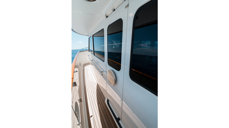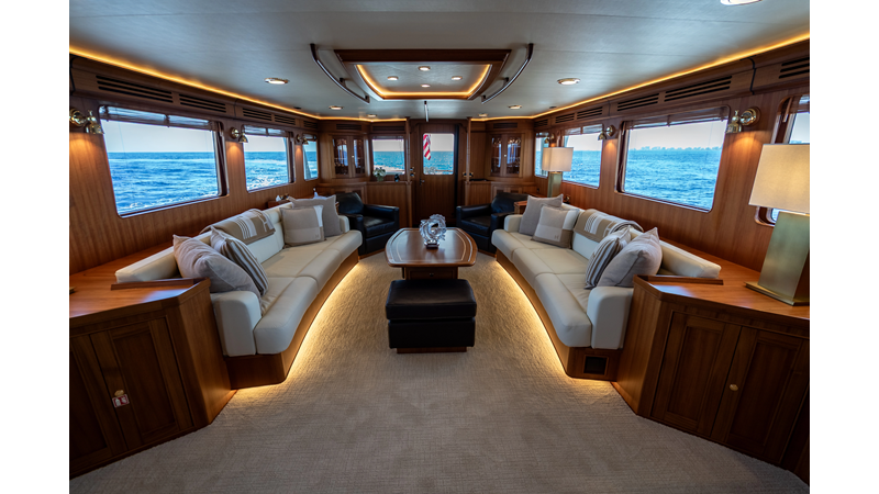 Full Paint Job: Rybovich Coatings Dept. Exterior Paint Superstructure/Hull with Awlcraft 3000 “Flag Blue” Hull and "Ostrea" White Superstructure with “Moon Dust” Non-Skid Full Ceramic Coating Completed New Teak Throughout: Teak Decking Systems Deck Replacement Using Vacuum Bag Adhesive Infusion New Garmin Electronics Package with Redundant Backbones and Sensors Including Sounders, Radios, AIS, Radar, SAT Compass, Cameras, Nav Radios, etc. Dual Starlink Marine Antenna System 2023 Axis 4.2 Inflatable with 60hp Yamaha (Under Warranty) with New Cover, YRM Removable Chocks, and Custom Trailer Full Hardware Removal and Replacement with Fasteners Renewed on Entire Vessel Full Running Gear Service: Shafts and Rudders, New Bearings, Seals, Prop Reconditioning, Bottom Paint, Prop Speed (Humphree Tabs Serviced) Full Interior Soft Goods Replacement Including RH and Hermes Décor New Flybridge Enclosure Varnish Stripped and Reapplied (16 Coats Awlbrite System) David Sutherland/Summit Exterior Teak Furniture Stripped and Recoated Full Exterior Cushions and Stamoid Cover Replacement Anchors Sanded and Polished Hydraulic Systems Serviced, Fin Seals Replaced, Windlasses Rebuilt, Aft Windlass Replaced ElectroSea Strainer System with Dual Stainless Steel Raw Water pumps Willy Vac Engine Room Vacuum System New Isotherm Stainless Aft Deck Fridge and New Sub Zero Flybridge Fridge Onboard SpotZero Serviced New Dekit Synthetic Matting in Engine Room and Lazarette New Miele Washer and Dryer New Carpeting Throughout