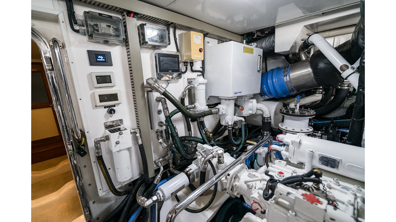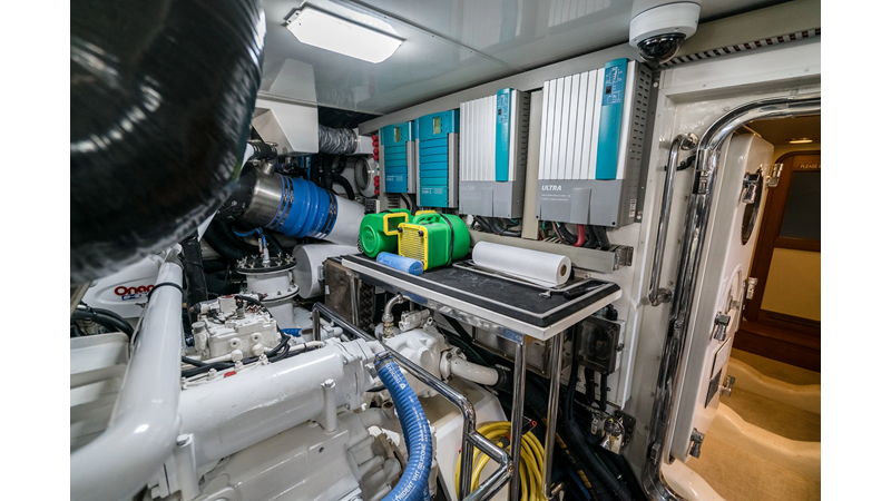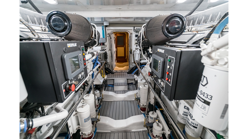 Caterpillar C32s Fully Serviced with Recently Replaced Aftercoolers YachtController Side Power Bow and Stern Thrusters Twin Onan 27.5 kW Generators NAIAD Stabilizers SeaRecovery Aquatic Water Maker Preferred 4 Stateroom/5 Head Layout (Full-Beam Staterooms) + Crew Custom Inflatable Toy Dock DeAngelo Exhaust Risers Replaced 2022 Flybridge Air Conditioning Added 2022 A-Sea Frequency Converter (Recently Serviced) Updated A/V and Bose SoundTouch System with 9 Zones Recent Work Completed 2025: