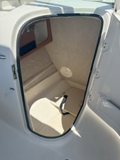 Key options include trim tabs, snap-in carpet and a freshwater shower. In the cockpit, a comfortable back-to-back port side passenger's seat folds flat into a reclining lounge. A well-insulated fish locker with stainless steel supports is built-in under the seat and complements the two bow fish boxes.