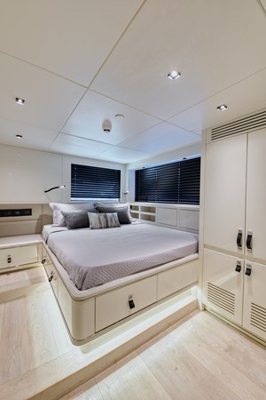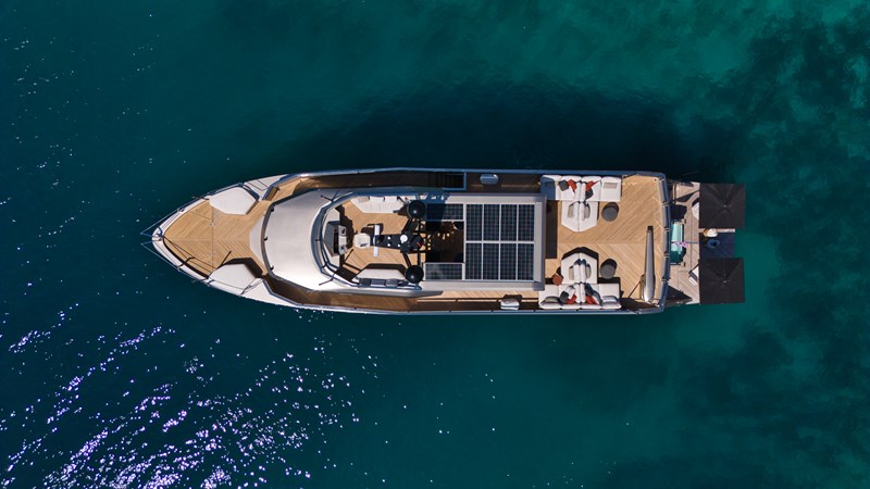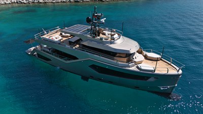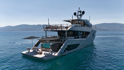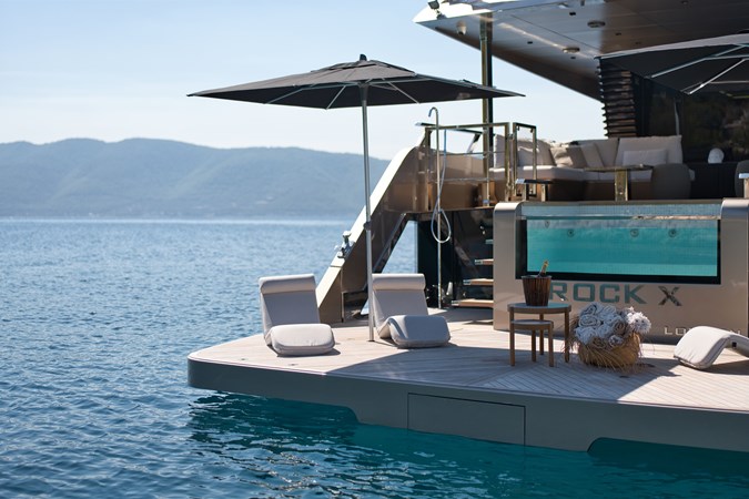 ROCK X strikes the ideal combination between speed, comfort, and spaciousness. The world renowned team at Vripack designed a fast super displacement hull with a high, straight bow for intercepting rough seas. With an innovative sliding platform and a draft of only 1.8 meters, she can visit the most secluded areas in pursuit of adventure. All of this, combined with the yacht's steel and aluminum construction, results in a remarkably comfortable cruising experience with impressive speeds. Furthermore, at under 24 meters, ROCK X retains all of the benefits of the European CE rules' CE-A category. Additionally, ROCK X excels in providing unparalleled comfort and space to its discerning owners and guests. With a beam of 6.5 meters and three decks, the yacht's voluminous, open-plan layout boasts 20% more internal volume than other comparable-sized boats. She can comfortably accommodate eight guests and four crew in a volume of 150GT. On the main deck, full-height windows give amazing uninterrupted views onto the water. This space has a lounge area with adjustable seating and a fully equipped minibar, while the dining area, which can seat up to 12, features one of the largest glass panels found on a yacht this size. The owner's suite is on this level, characterized by a private drop-down balcony with underwater lighting and child-proofing features available at the press of a button. There are three guest cabins on the lower deck, a double and two twins, and the 15-square-metre bridge deck is given over to relaxing, with seating and al fresco dining. Sunshades create a further outdoor space on the main deck. Her Beach Club with Jacuzzi acts as a centerpiece for comfort and is just as much an integral part of her ergonomic functions. Her custom swim platform can accommodate a 6.5m (21ft) tender, but when unloaded, acts as the perfect connection to the sea. For additional details and for her full technical specifications, please reach out.