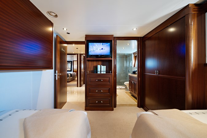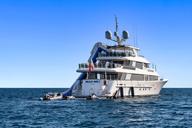 With five elegantly appointed guest cabins, RULE NO. 1 provides ample space to accommodate up to 12 guests for both weekend getaways and extended voyages. With an abundance of luxurious lounge areas, her expert design invites you to unwind and soak in your time on the water. On the sun deck, a jacuzzi offers the perfect vantage point for breathtaking views, while exercise equipment transforms the Portuguese deck into a private gym. For dining and entertaining, each of her three decks features its own bar and dining area, allowing guests to enjoy meals and drinks in whichever setting feels most inviting.