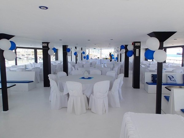 Brand new power cat "SALONE" built in 2015. "SALONE" is a tall, fast and luxurious power catamaran ideal for all kinds of events. Ideal for groups big and small, "SALONE" can cruise all year round. She has a capacity of 185 passengers.