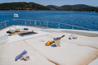 Exterior spaces are created for sunbathing, dining and socializing. Her large flybridge is perfectly suited to entertaining and enjoying the fresh air. A flybridge davit was deleted, and the tender was relocated to the swim platform on a hydro-electric lift.