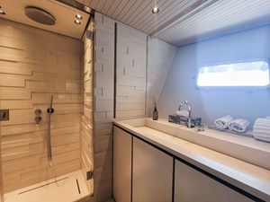 Walking down the spiral staircase, more social spaces can be found as there is a cozy lounge on the lower deck. For overnight trips, there are two comfortable en-suite cabins (1 Master and 1 VIP) that can sleep four people in luxury.