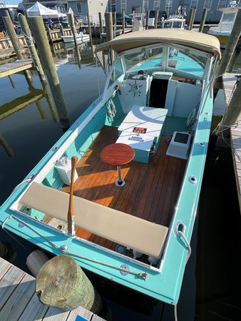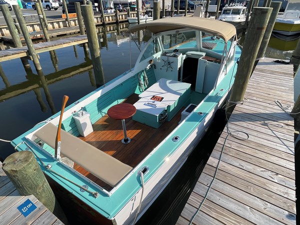 Well maintained iconic and popular Mackenzie Cutty Hunk Bass boat built in Rhode Island in 1964. She is a stock design single screw inboard powered skiff. 28ft with 8 -10 inch beam and draws approximately 3 feet. This boat has been stored each season under in water covered shed at Arnolds Boat Basin and Johnson Brothers Boat yard most of its life on Barnegat bay and has won many ACBS awards over the years. She has a single 220 HP and rated 318 cubic inch displacement 8 cylinder fresh water cooled engine. The engine was rebuilt in 2000 and the hours meter now reads just over 80 hours. The engine is well secured to the stringers and runs well. Has 2 welded aluminum fuel tanks on the port and starboard side of the aft cockpit sole. A marine survey from 2022 is available upon request. Full equipment list is outlined in the survey and she has a new winter cover with frame. She is priced to sell!