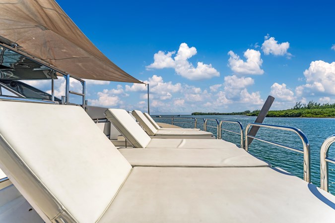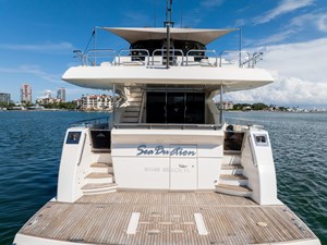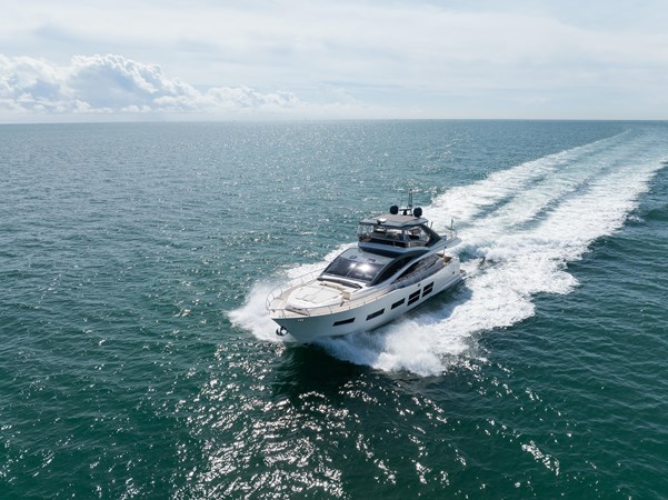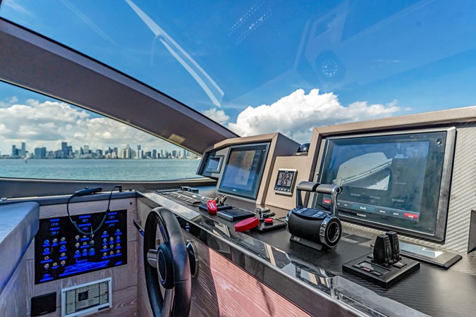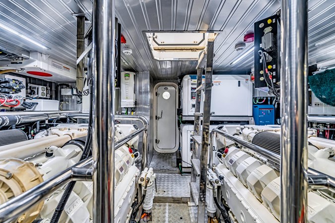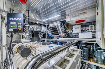 Turnkey and READY TO CRUISE! Seaduction comes fully loaded with state of the art electronics, twin MAN 1550 HP engines with a V Drive transmission allowing for much larger accommodations space below deck. This vessel's MAN 1550 will make this boat glide thru the water with a max speed of 32 knots, cruise all day long at 26 knots. Equipped with Side Power hydraulic bow and stern thrusters as well as Sleipner hydraulic stabilization fins this vessel is ideal for long trips and overnight stays.