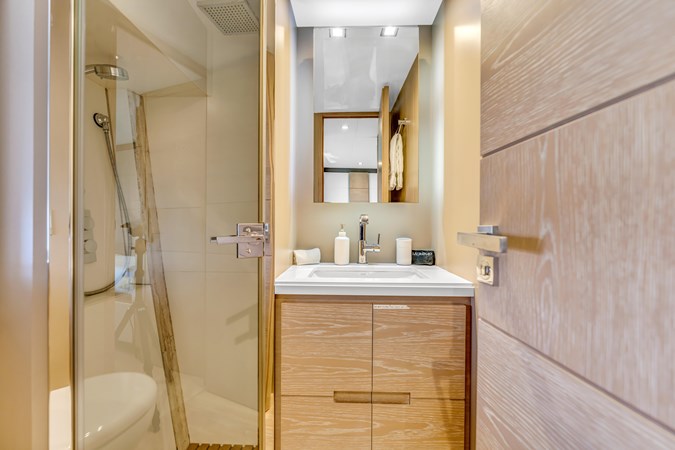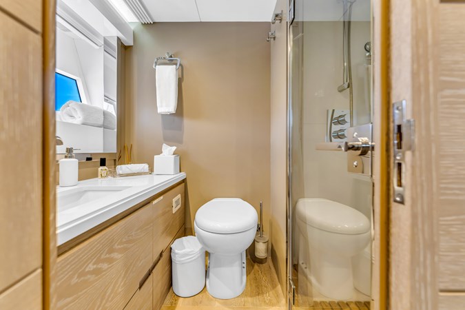 The custom designed interior will take your breath away. 4 en suite cabins and a day-head on the main deck for guests. Additional 2 rooms to accommodate 3 crew members in ultimate comfort.