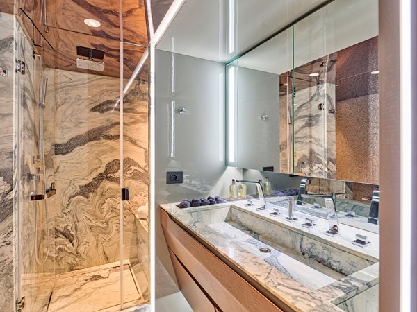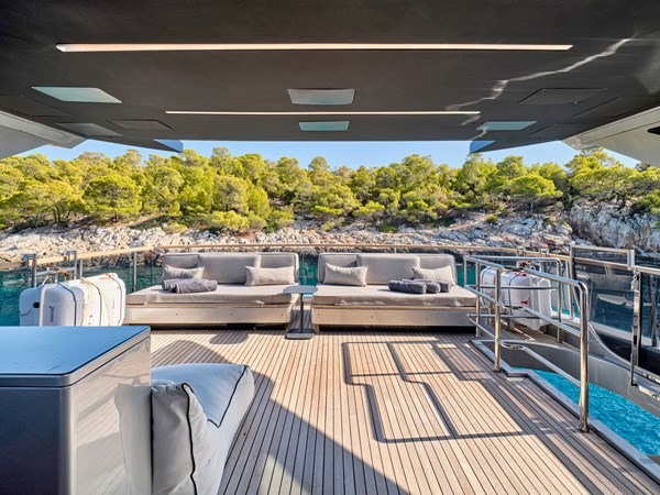 “Seammetry” is designed with a focus on high guest comfort during cruising, offering ample deck space with 3 dining area options and a vast sun deck with a wet bar and hard top. Key features include: