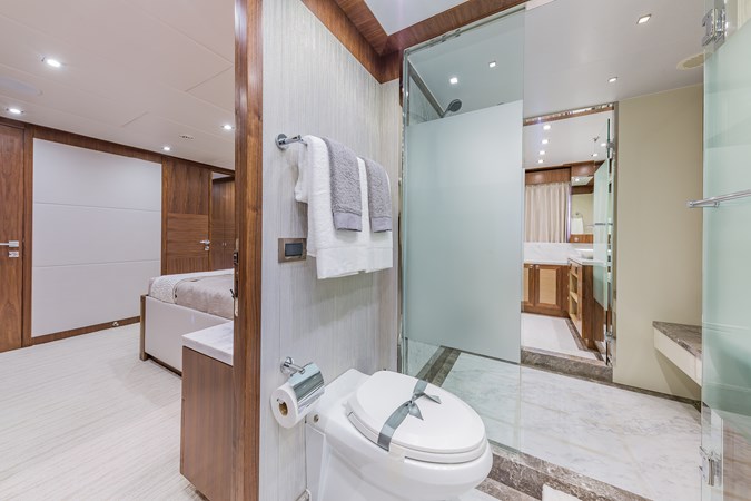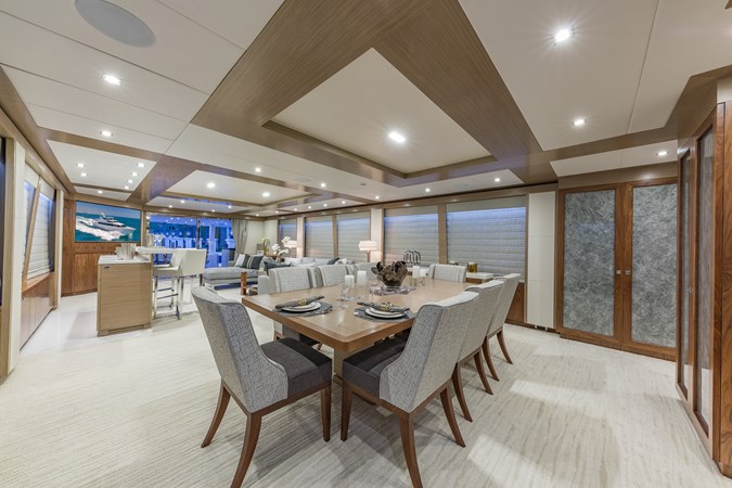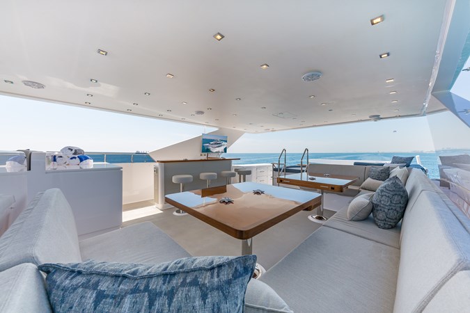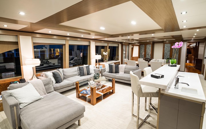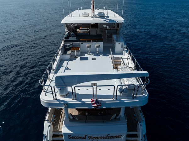 Upon touring Second Amendment, most people immediately notice how much larger the key living areas feel when compared to many European designs in this class. The guest accommodations are more generous, the bathrooms more substantial, the main salon and dining spaces more open, and the upper deck especially well suited for entertaining. This is a yacht built for the way owners actually use their boats, and hosting 50 or more guests for cocktails is very much within her comfort zone.