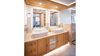 SEVEN SEAS has a timeless interior decor by Epikworks Interior Design and comfortably sleeps 10 guest in 5 cabins including a spacious on-deck master. A 4,000kg davit located on the upper deck can accommodate a substantial tender. Her Caterpillar C32 giver her a range of 3,600nm at cruise speed. She is built to commercial class and built for true blue water cruising.