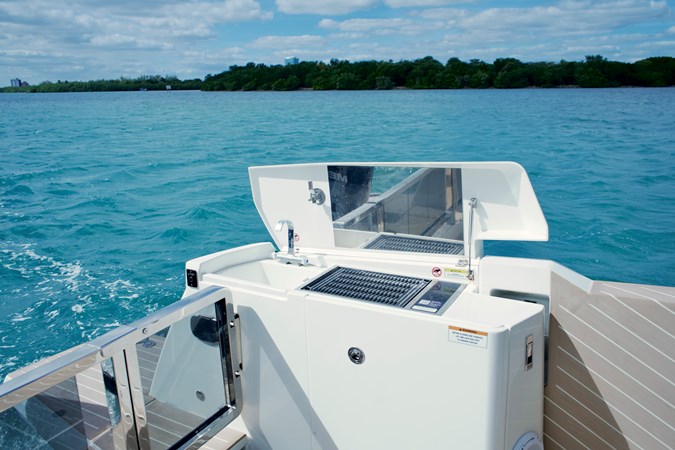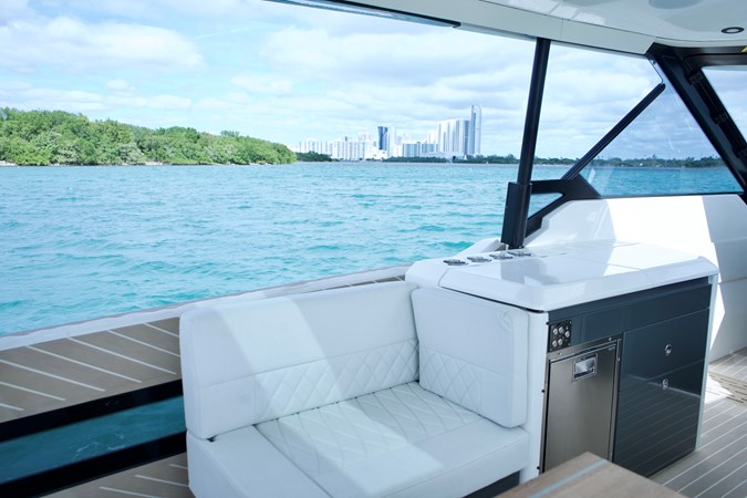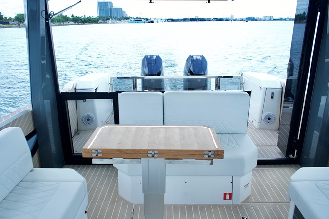 8: Complete glass bulkhead aft which opens up 100%, giving you the versatility to have both.