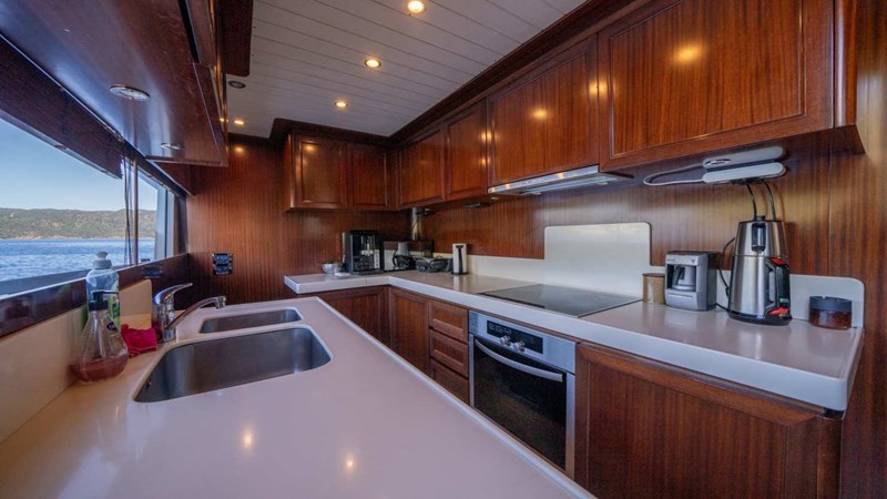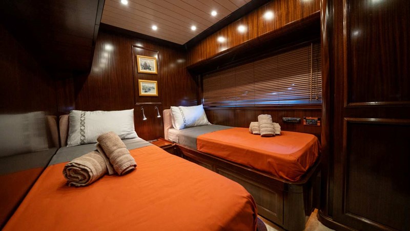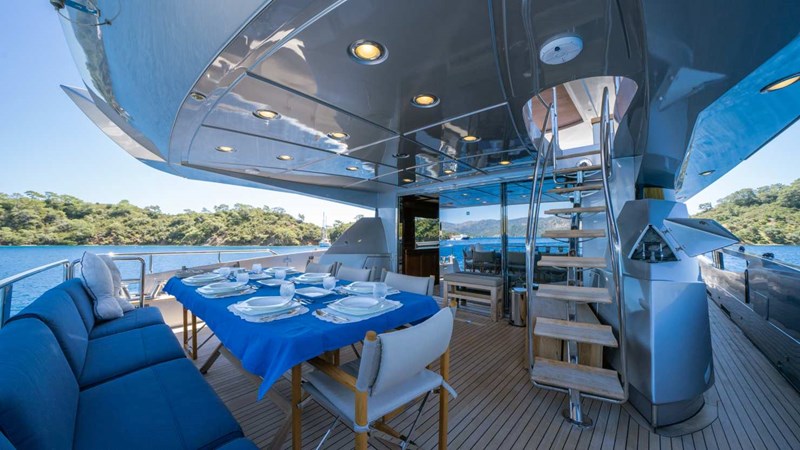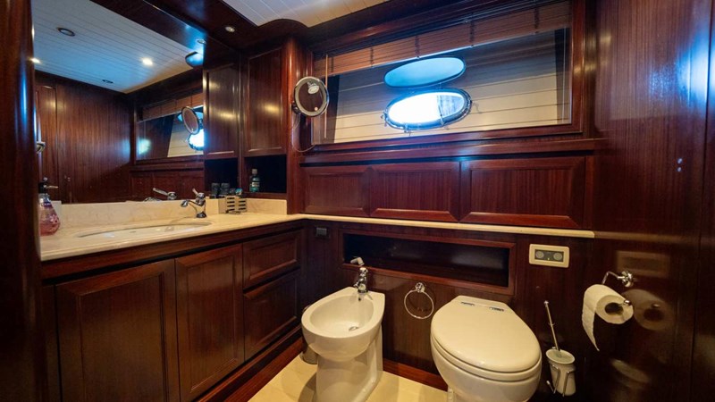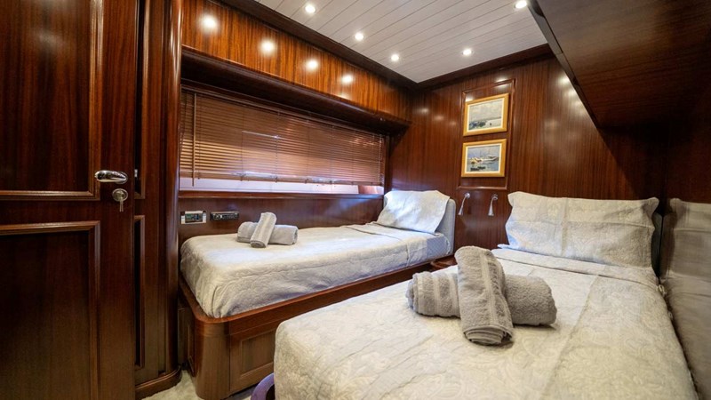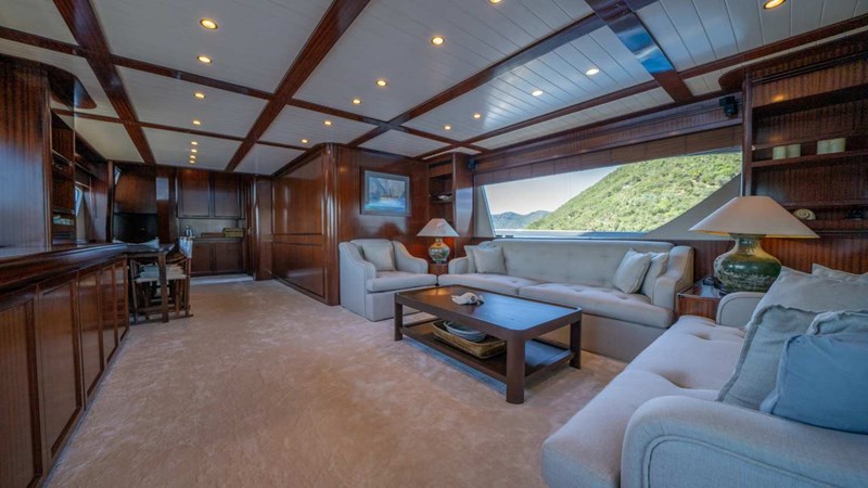 During the 2024 refit, a third generator was installed, and the vessel's paintwork was completely renewed. The engine capacity was upgraded to 2400 horsepower to enhance performance. The flybridge was custom-designed to meet the specific requirements of the royal family. All interior paneling and finishes feature solid mahogany craftsmanship, reflecting exceptional quality and elegance.
