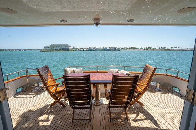 - Fully equipped flybridge galley and entertainment space