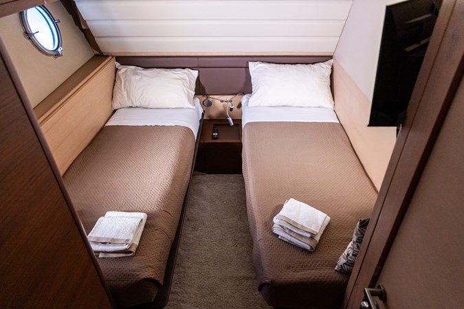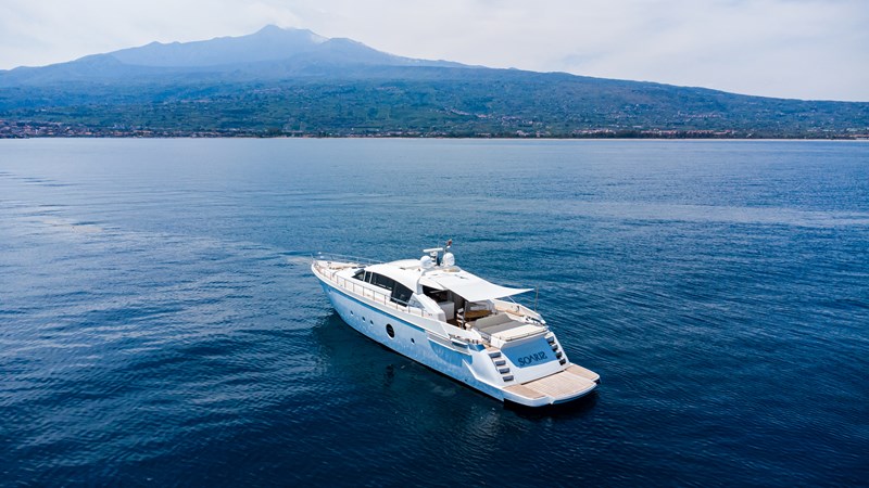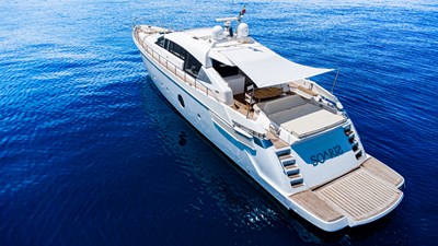 Step aboard SOARIS, a sleek Aicon 85 with a unique story. Her hull was laid in 2009, paused, then fully relaunched with new machinery and systems before completion in 2014. First registered in 2018, she offers 4 cabins for 8 guests, a 46sqm saloon, and twin CAT C33 engines delivering 34 knots max.