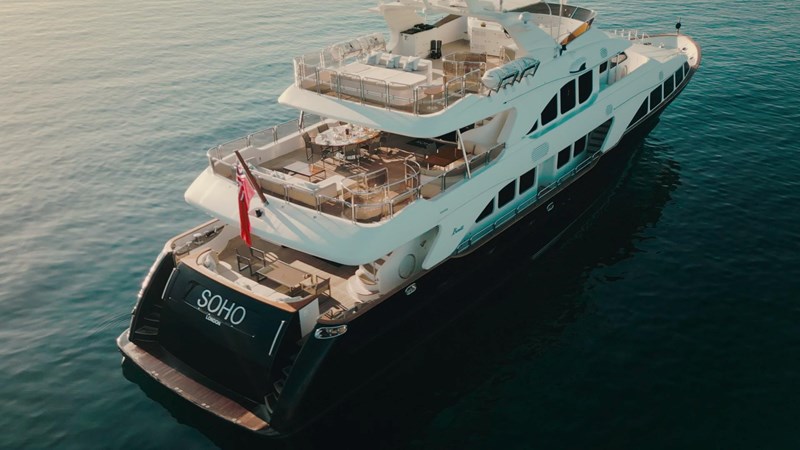 SOHO can accommodate up to 11 guests across five cabins, including a main deck Master suite with panoramic views. This area of the yacht is very spacious and also features a large walk-in wardrobe and an oversized rain shower.