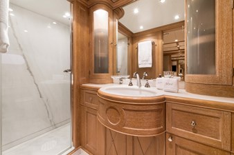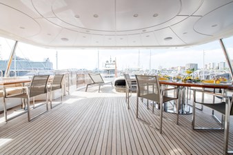 Out on deck, there is plenty of space for sunbathing and alfresco dining, with modern furniture and Burma teak creating a calm, relaxing ambience. The large sun deck offers sunpads, and for more private moments the observation seating or bridge deck provides peaceful ocean views. A large swim platform allows easy access to the yacht’s water toys.
