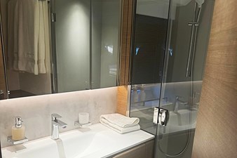 With a top speed of 35 knots and cruising at 30 knots, Solomon offers fast, quiet, and comfortable stabilized passages. Her 4 ensuite guest cabins include a full-beam master suite, VIP forward, and two convertible twins — ideal for families or guests. Aft crew quarters accommodate two, with private access. All with the refined style for which Princess Yachts are known.