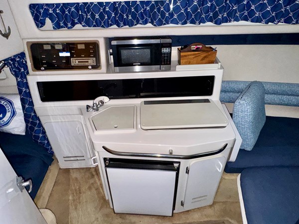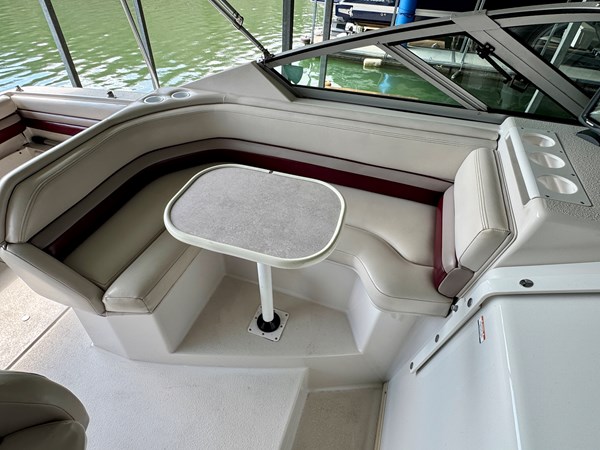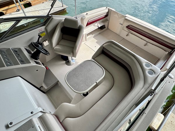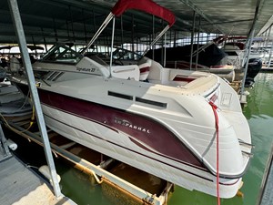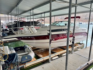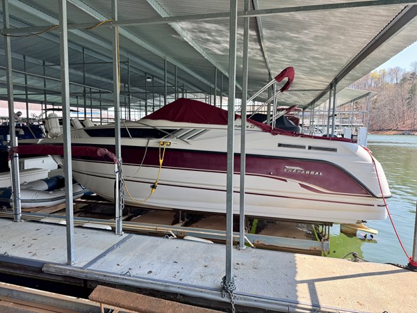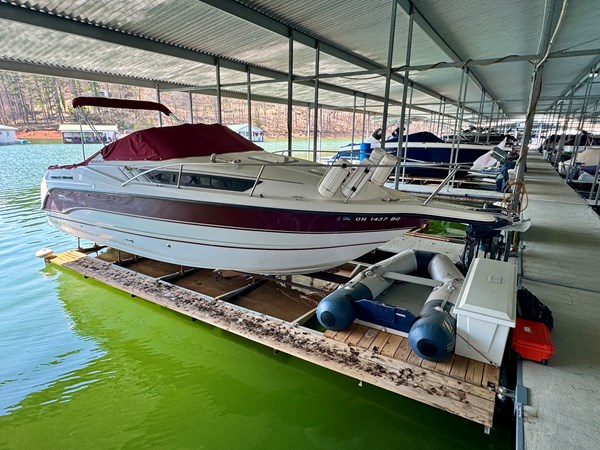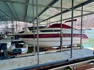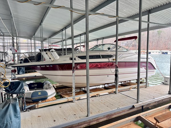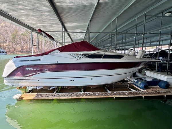 This 1994 Chaparral Signature 27 Cruiser For Sale on Norris Lake Tennessee is equipped with a Volvo Penta 740 V8 inboard/outboard stern drive engine with duo-prop outdrive and features a CruisAir marine air conditioning unit, an AC/DC fridge, alcohol/electric dual burner range cooktop, microwave, sink, AM/FM/CD stereo, dual bimini tops with camper/canvas isinglass enclosure, cockpit cover, convertible v-berth dinette and mid cabin berths to sleep 4, an electric wet head with shower and sink, 1000Watt inverter, dual batteries with battery switch, fish finder, remote spotlight, hot/cold transom shower, & more! Available for an additional purchase: Ozark 10,000lbs capacity front mount boat lift and dock box with a transferable Covered Slip on Norris Lake TN! And a 2011 Zodiac Cadet 260 RIB with a trolling motor is also available for an additional purchase.