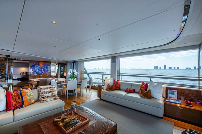 The overall atmosphere is open, bright, and spacious, making it feel like a much larger yacht as soon as you enter.