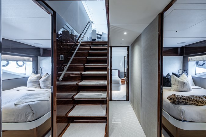 The Princess X95 is one of the flagship models offered by Princess Yachts. What distinguishes the X95 is its Super Flybridge concept, which features a flybridge and main deck that extend nearly the full length of the hull. This innovative layout significantly enhances both indoor and outdoor living spaces compared to standard yachts of similar size.